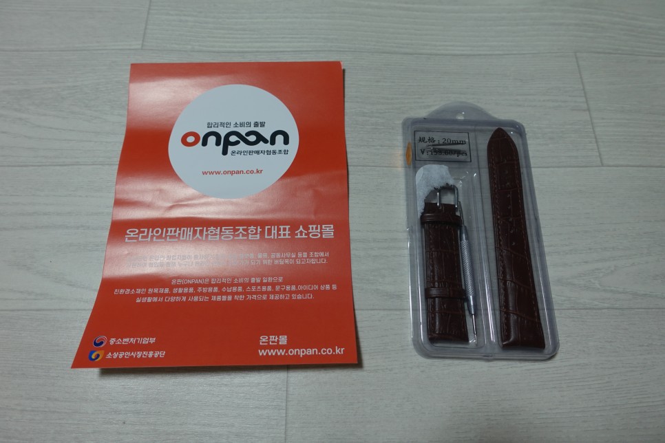 상자를 열 보보니 이렇게 쇼핑몰 안내서 겸 반품 신청서와 브라운 색상의 쿠런트 천연 소가죽 시계줄이 들어있네요