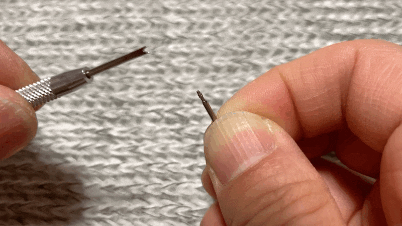 리무버 툴은 시계줄을 빼거나 넣을 때 이렇게 스프링바의 돌기 부분에 리무버를 넣고 눌러주는 용도로 사용합니다
