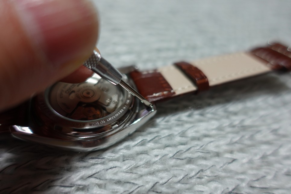 스프링바를 시계줄에 끼워 둔 다음 시계의 핀홀에 스프링바의 한쪽을 삽입하고 반대편 스프링바를 리무버를 이용하여 눌러주며 밀어 넣으면 시계줄 교체는 끝입니다 참 쉽죠?